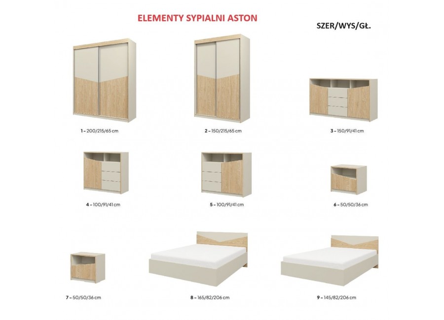 Meble z kolekcji ASTON to niebanalne i funkcjonalne meble, doskonałe do wnętrza każdej sypialni. Meble systemowe ASTON to wiele brył, dzięki czemu możesz stworzyć zestaw mebli idealny dla siebie.