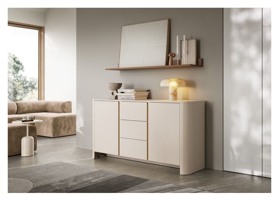 KOMODA BARI CASHMERE wyróżnia się nowoczesnym funkcjonalnym designem. Geometryczna linia oraz zaokrąglenia korpusów tworzą elegancję, która z łatwością odnajdzie się w każdym salonie czy też pokoju dziennym.