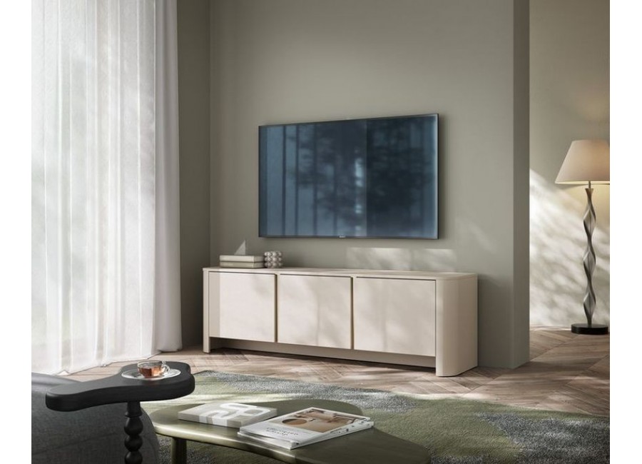 SZAFKA RTV BARI CASHMERE wyróżnia się nowoczesnym funkcjonalnym designem. Geometryczna linia oraz zaokrąglenia korpusów tworzą elegancję, która z łatwością odnajdzie się w każdym salonie czy też pokoju dziennym.