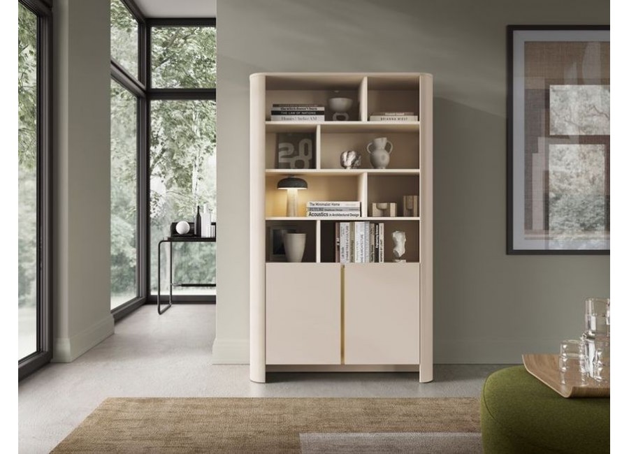 REGAŁ RG103 BARI CASHMERE wyróżnia się nowoczesnym funkcjonalnym designem. Geometryczna linia oraz zaokrąglenia korpusów tworzą elegancję, która z łatwością odnajdzie się w każdym salonie czy też pokoju dziennym.