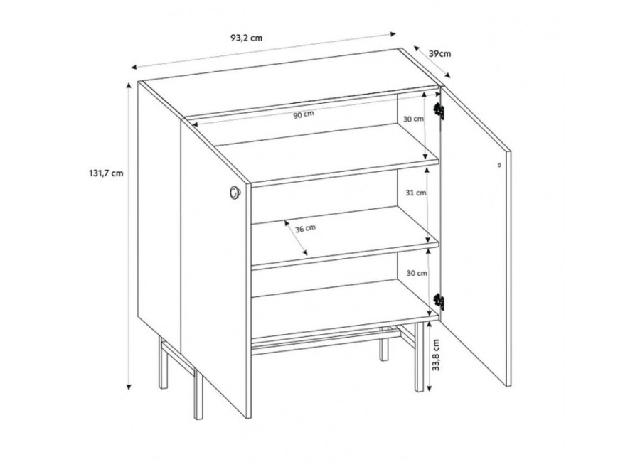 Korpus mebli wykonany jest z płyty laminowanej o grubości 16 mm.