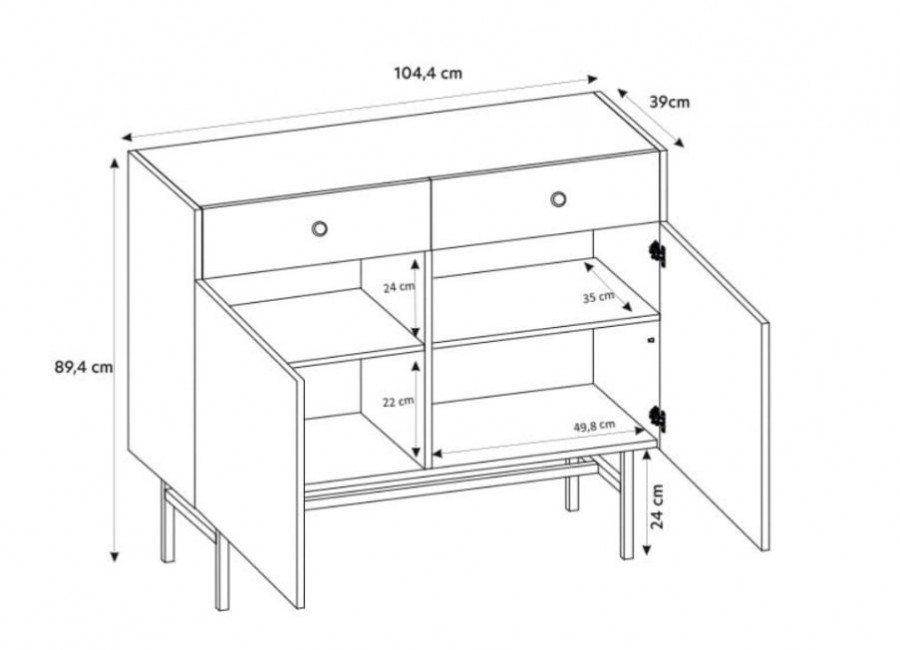 Komoda 2D2S (wys. 89,4/szer. 104,4/gł. 39 cm)