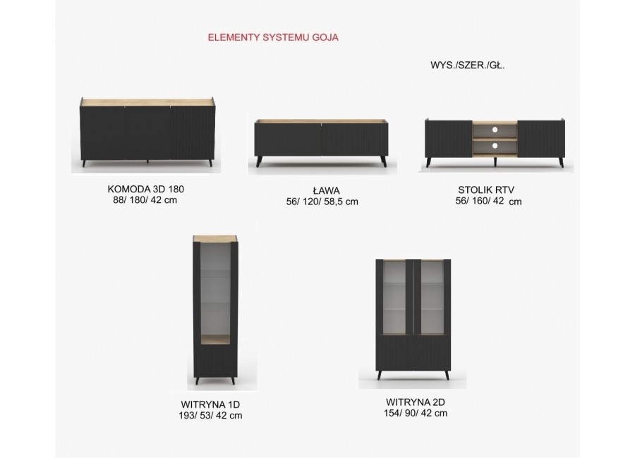 System GOJA to zestaw uniwersalnych mebli, pozwalających stworzyć nowoczesne salon lub też oryginalny pokój młodzieżowy. Meble, dzięki prostym formom oraz ciekawej, ciepłej kolorystyce idealnie pasują do obecnie panujących trendów .
