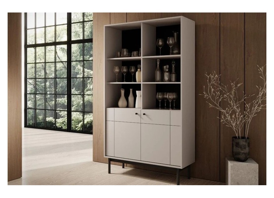 System JAPANDI to doskonały wybór dla osób ceniących sobie minimalizm, estetykę oraz przytulność. Proste formy kolekcji, uzupełnia subtelny geometryczny wzór na froncie. Każda z brył osadzona jest na czarnych nóżkach.