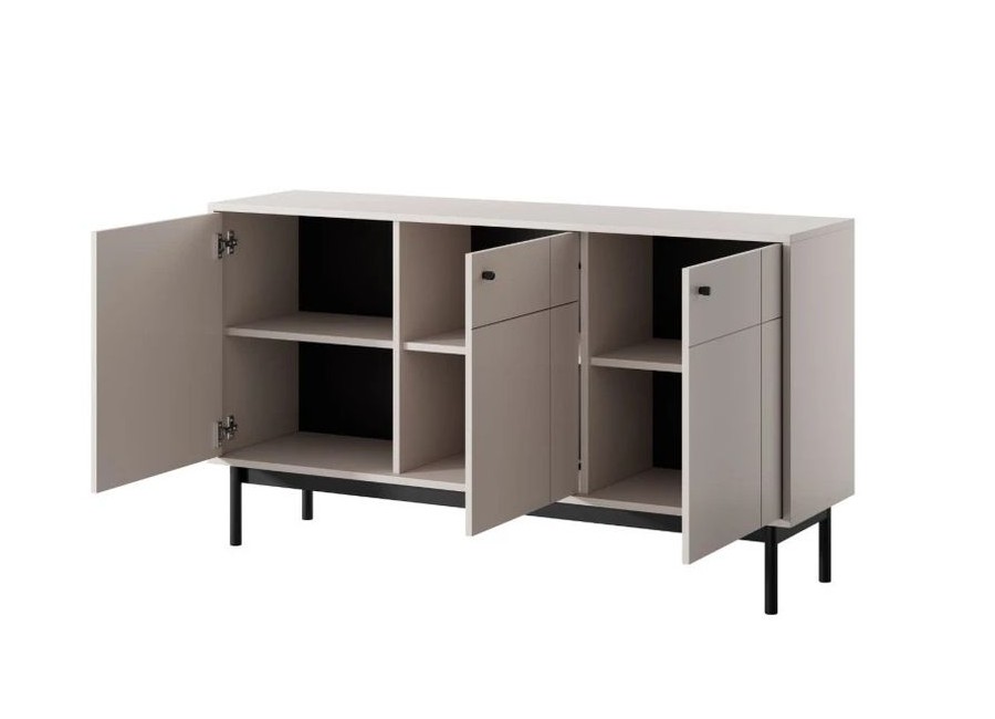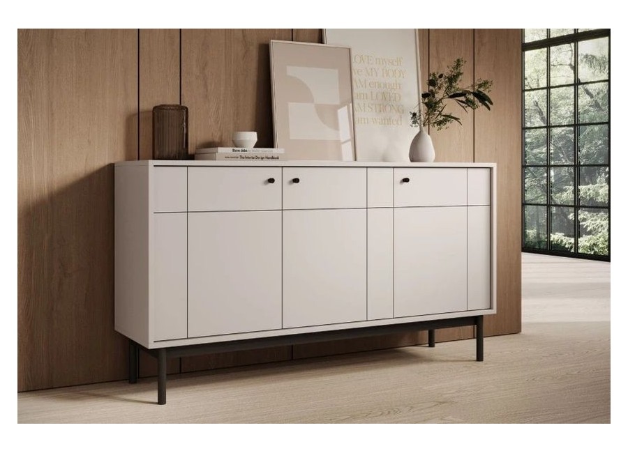 System JAPANDI to doskonały wybór dla osób ceniących sobie minimalizm, estetykę oraz przytulność. Proste formy kolekcji, uzupełnia subtelny geometryczny wzór na froncie. Każda z brył osadzona jest na czarnych nóżkach.