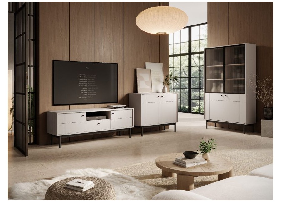 System JAPANDI to doskonały wybór dla osób ceniących sobie minimalizm, estetykę oraz przytulność. Proste formy kolekcji, uzupełnia subtelny geometryczny wzór na froncie. Każda z brył osadzona jest na czarnych nóżkach.