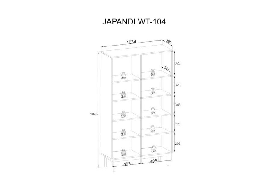 System JAPANDI to doskonały wybór dla osób ceniących sobie minimalizm, estetykę oraz naturę. Proste formy kolekcji, uzupełnia subtelny geometryczny wzór na froncie. Każda z brył osadzona jest na czarnych nóżkach.