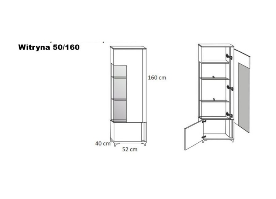 Witryna mała prawa (wys. 160/szer. 52/gł. 40 cm)