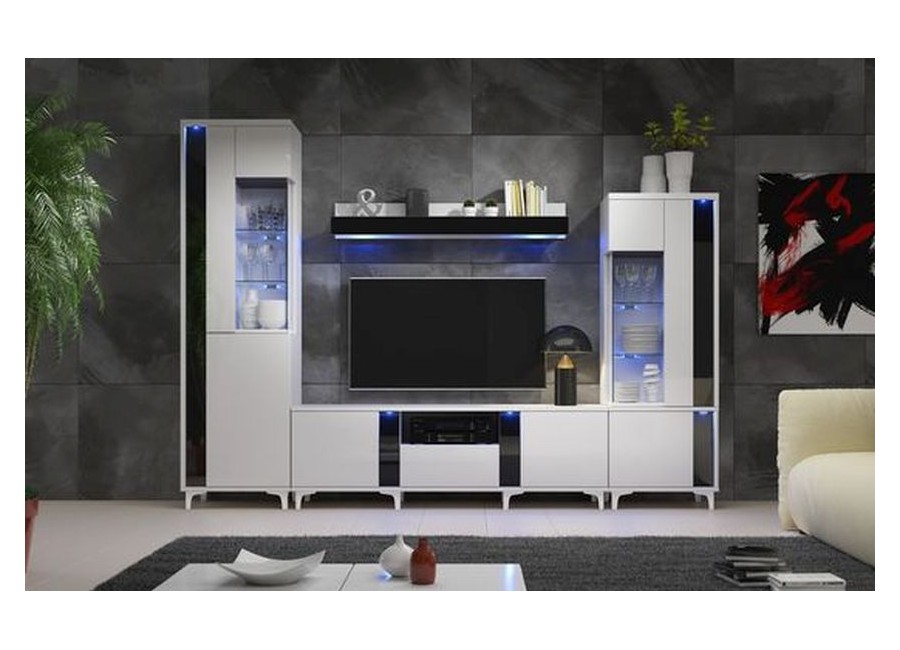 Meble wykonane z płyty laminowanej o grubości 16 mm odpornej na zarysowania, natomiast fronty z płyty MDF połysk.
