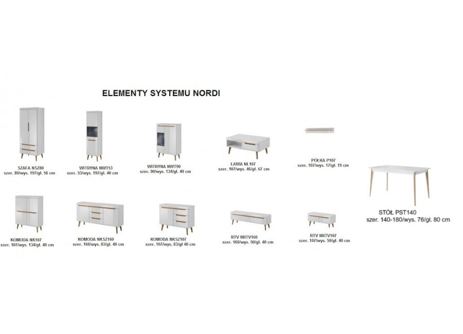 Funkcjonalne i nowoczesne meble systemowe NORDI POŁYSK to możliwość stworzenia własnej kompozycji zestawu idealnie pasującego do każdego wnętrza.