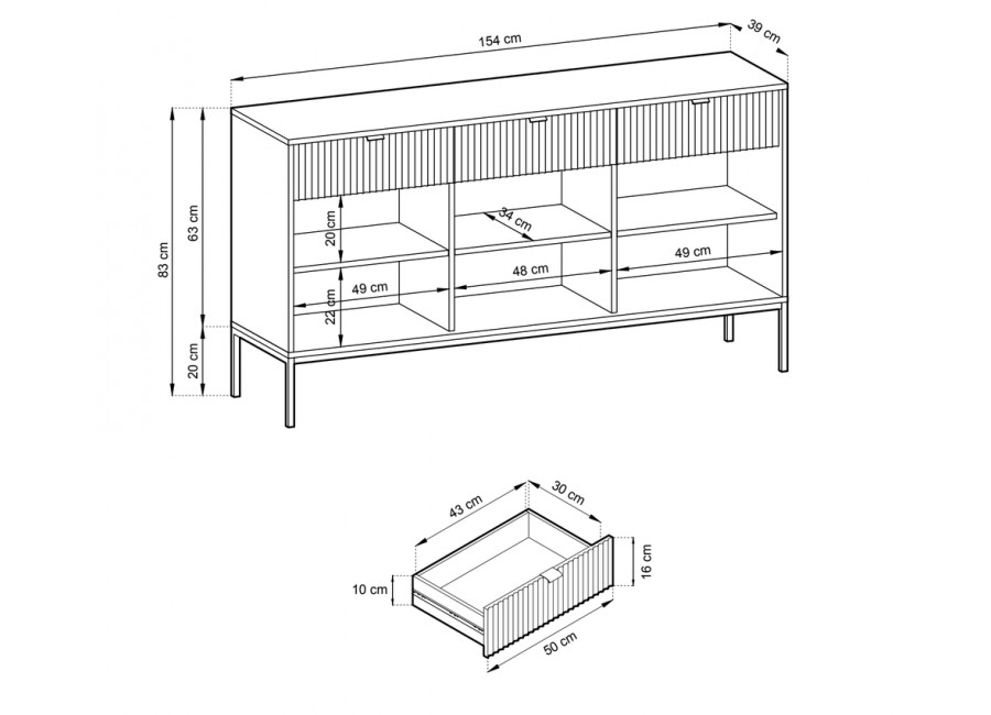 Wymiary komody: