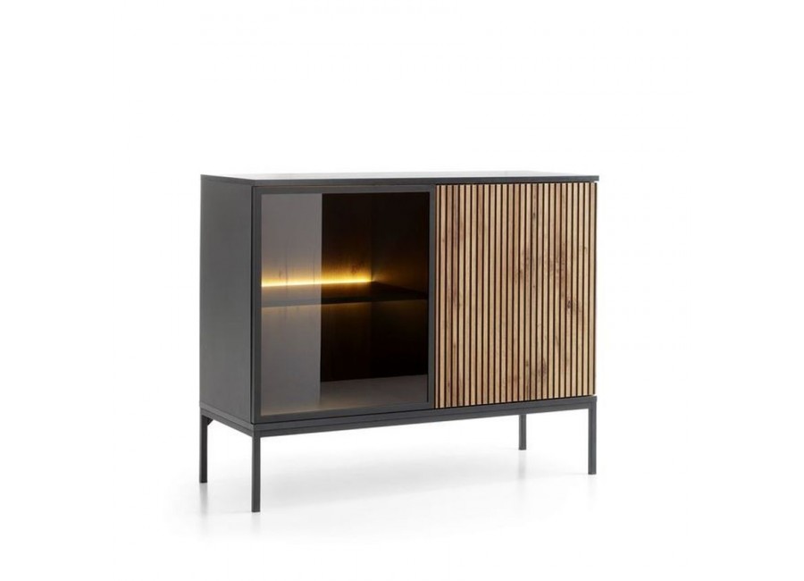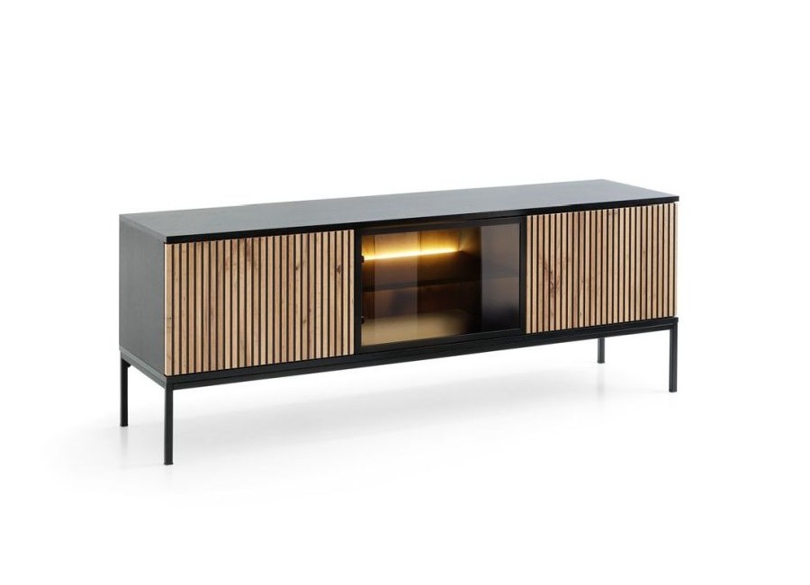 Kolekcja SENTO dąb wotan to system meblowy, który dzięki frezowanym frontom w ciepłym odcieniu dębu zwieńczone ciepłą barwą oświetlenia LED, tworzy niepowtarzalną atmosferę luksusu w każdym salonie czy też pokoju dziennym.