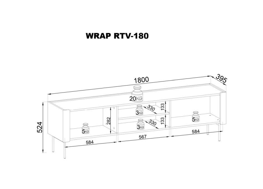 Stolik RTV RTV180 (wys. 52/szer. 180/gł. 39 cm)