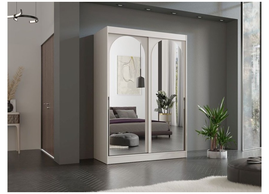 Szafa MODIN to wyjątkowy mebel, który da się dopasować do każdego wnętrza. Jako szafa z drzwiami przesuwnymi pozwala zaoszczędzić sporo cennego miejsca w niewielkich pomieszczeniach. Została wyposażona w lustra, które optycznie powiększają pokój oraz stanowią niebanalną ozdobę.